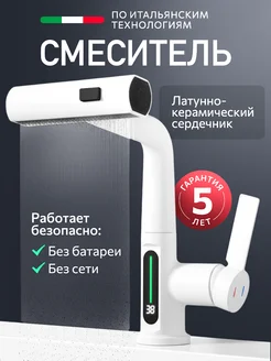 Смеситель для кухни с LED дисплеем с гибким изливом