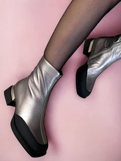 Ботильоны натуральная кожа с эффектом "Мокрый шелк"
