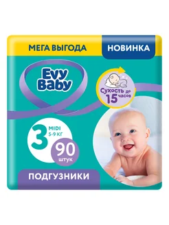 Подгузники Midi, размер 3, 5-9 кг, 90 шт