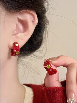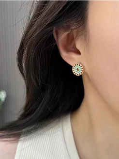 Серьги гвоздики геометрические круглые с цветной эмалью