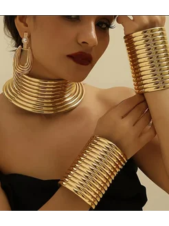 Комплект #350 золотистый чокер с серьгами и браслеты # 350