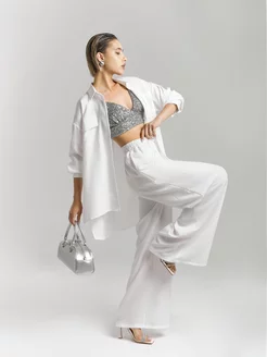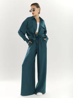 Летний костюм брючный с рубашкой оверсайз и брюками палаццо