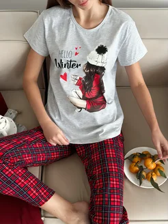 Хлопковая пижама со штанами и футболкой костюм домашний