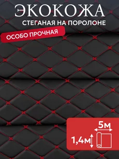 Экокожа стеганая Бабочка черный с красной ниткой длина 5м