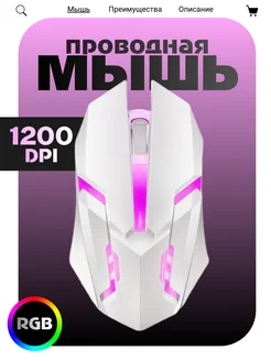 Игровая мышь проводная с подсветкой белая