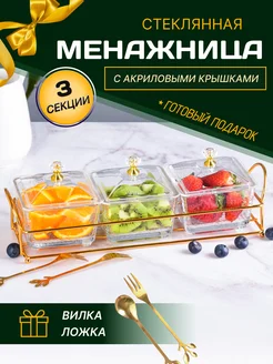 Менажница стеклянная с крышкой для орехов и сухофруктов