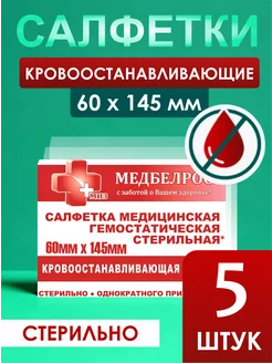 Гемостатическая салфетка, кровоостанавливающая.5шт