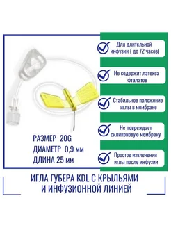 Иглы Губера KDL 20G (0 9мм) х 25мм с крыльями 3шт