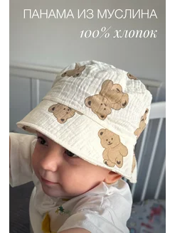 Панама для малыша летняя муслиновая на завязках