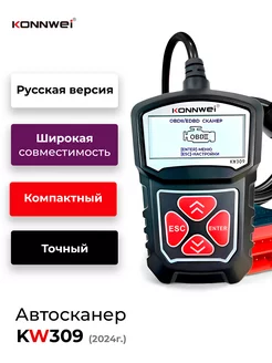 Мощный OBD2 автосканер KW309, версия 2025 г