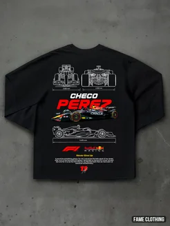 Лонгслив оверсайз y2k с принтом Formula 1 Checo Perez