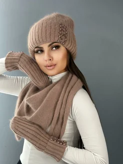 Комплект шапка шарф варежки ангора
