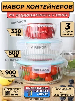 Набор Контейнеров из жаропрочного стекла с крышкой 3шт