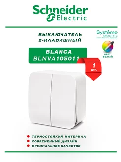 Выключатель двухклавишный накладной белый Blanca 1шт