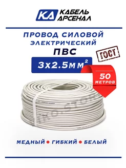 Провод электрический ПВС 3х2.5 ГОСТ 50 метров белый