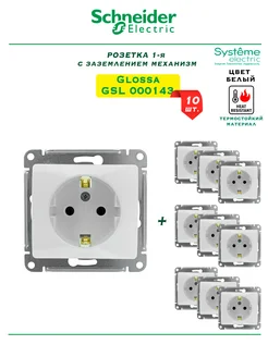 Розетка с з к встраиваемая белая GLOSSA 10шт