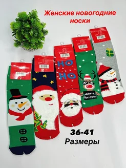 Набор высоких новогодних махровый носков с принтом 5 пар