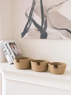 Набор из 3 трех плетеных джутовых корзинок для хранения