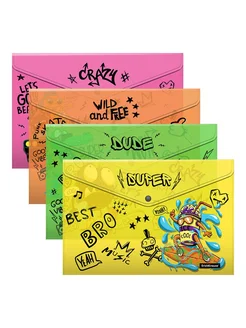 Набор из 4 папок-конвертов Funny Monsters A4 (21 × 29.7 см)