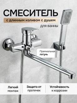 Смеситель для ванны и душа с длинным изливом и лейкой