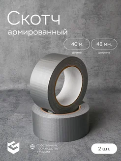 Скотч армированный 48мм*40м влагостойкий, 2 шт