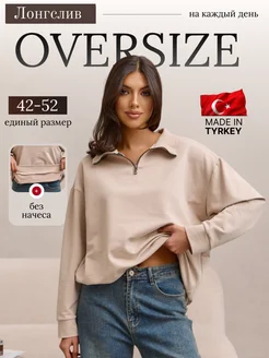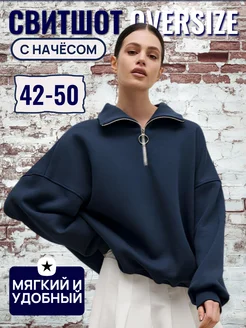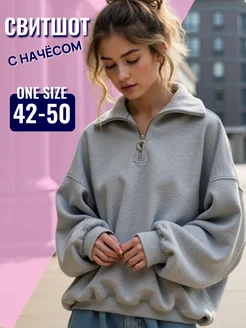 Свитшот оверсайз на молнии полузамок с воротником поло