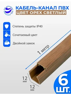 Кабель канал для проводов Орех светлый 12x12 1 метр - 6 шт