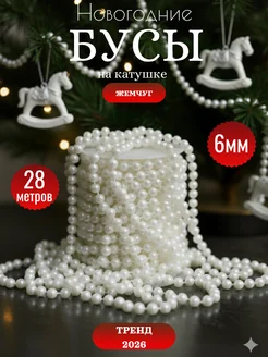 Новогодние украшения на ёлку бусы жемчуг