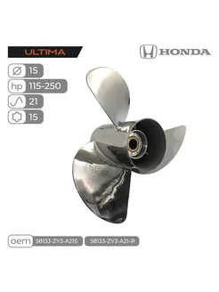 Винт Honda 150-250HP, 15, нерж, 3 л, шаг 21