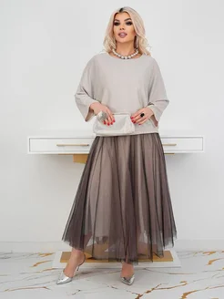 Костюм Шифон нарядный праздничный больших размеров стразы