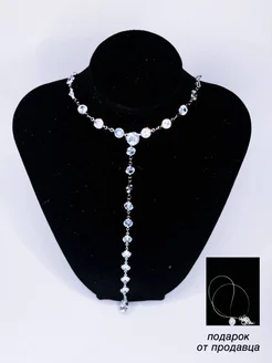 Комплект ожерелье подвеска на шею и серьги в стразах