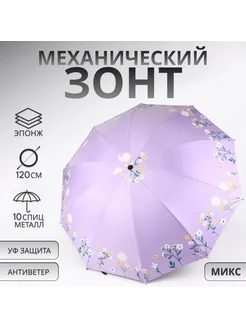 Механический зонт "Цветы", 120 см, спицы 10, Микс