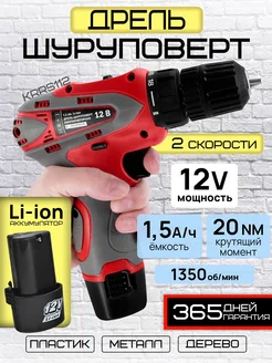 Дрель шуруповерт аккумуляторный для дома с 2 скоростями 12v