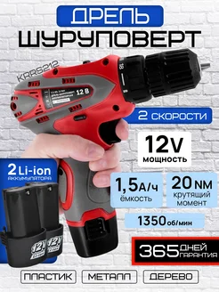 Шуруповерт аккумуляторный для дома 2 АКБ 2 скорости 12v