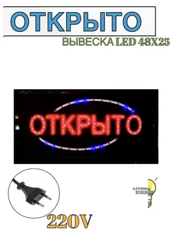 Табло "ОТКРЫТО" светодиодное AC220V мигающее 48*25 см