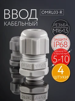 Кабельный ввод (сальник) 4 шт. M16х1.5( 5-10мм.), IP68