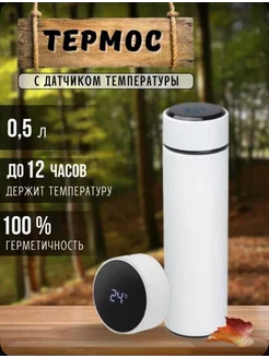 Термос 0 5 литр с датчиком температуры для чая и кофе белый