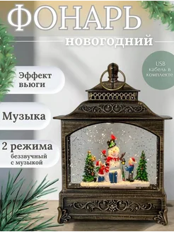 Новогодний фонарь со снегом и подсветкой музыкальный