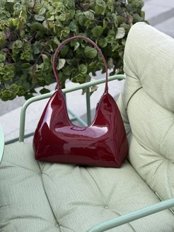 Сумка бордовая лаковая через плечо