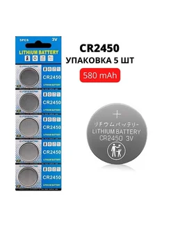 Батарейка литиевая CR2450 3V, 580 mAh, уп. 5 шт