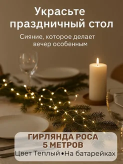 Огоньки на батарейках гирлянда роса 5 метров желтый