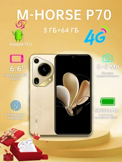 M-HORSE,Смартфон P70 64GB 5000mAh Золотой