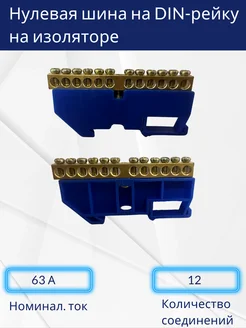Шина нулевая на дин рейку 6х9 мм 12 отверстий 63А 1шт
