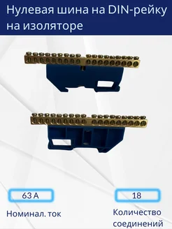 Шина нулевая на дин рейку 6х9 мм 18 отверстий 63А 1шт