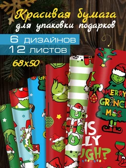Упаковочная подарочная бумага новогодняя набор 12 листов