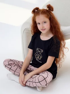 Пижама со штанами и футболкой стильная свободная, хлопок