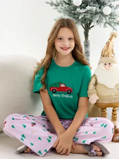 Пижама Новогодняя со штанами и футболкой вышивкой