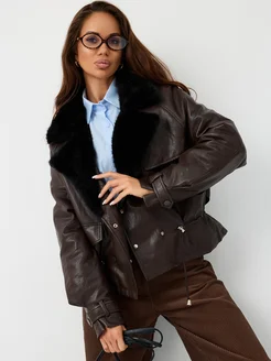 Куртка пуховик демисезонная кожаная с мехом под песец
