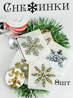 Наклейки снежинки блестящие 2025 для украшения холодильника