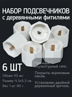 Набор свечей без запаха с деревянным фитилем в гипсе 3 шт